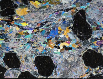 Macrofotografie di sezioni sottili di rocce metamorfiche