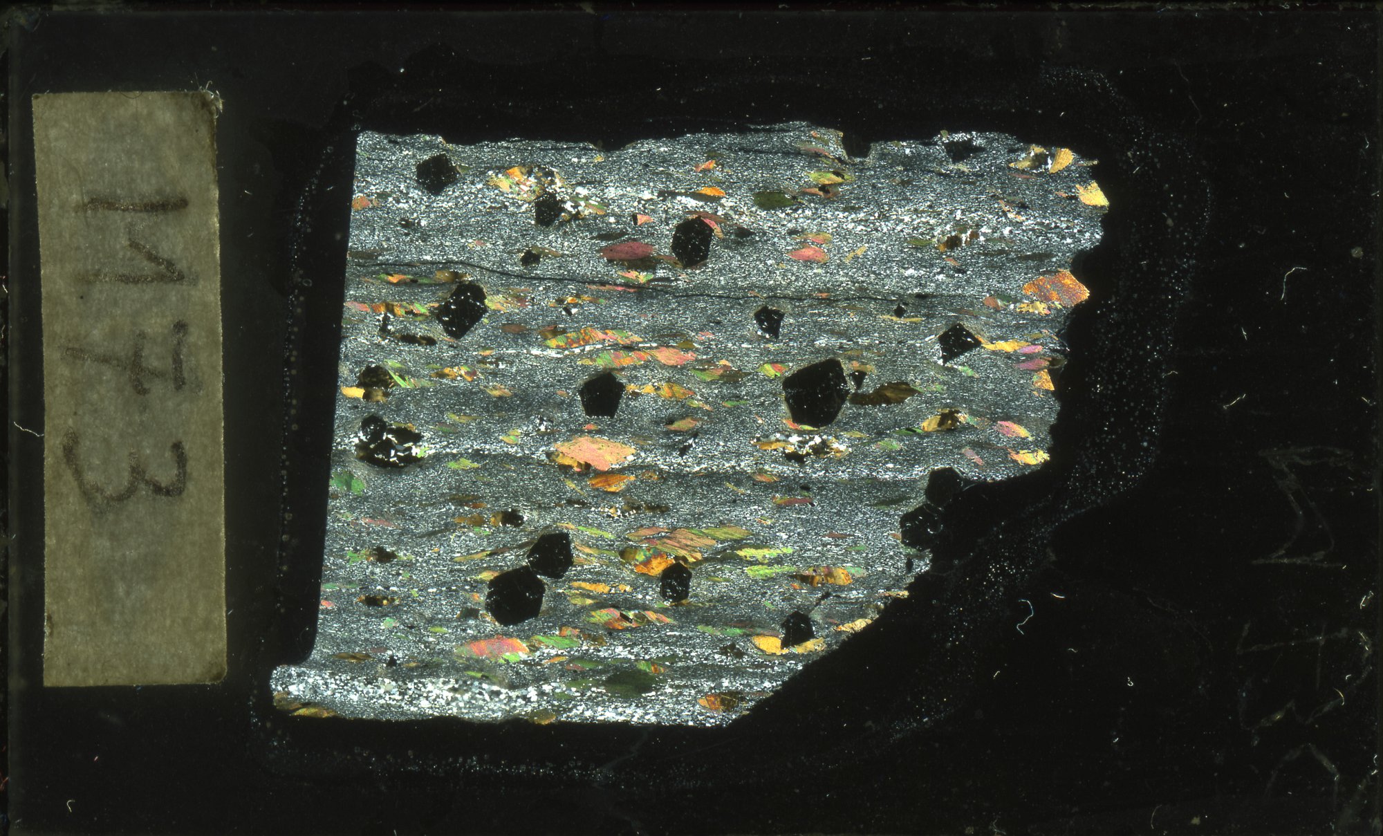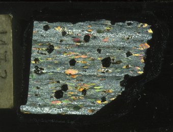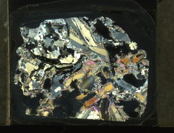 micascisto a granato e staurolite (polarizzatori incrociati)