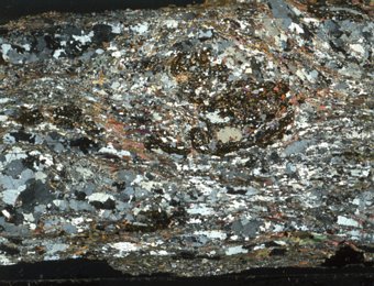 paragneiss a granato e cianite (polarizzatori incrociati)